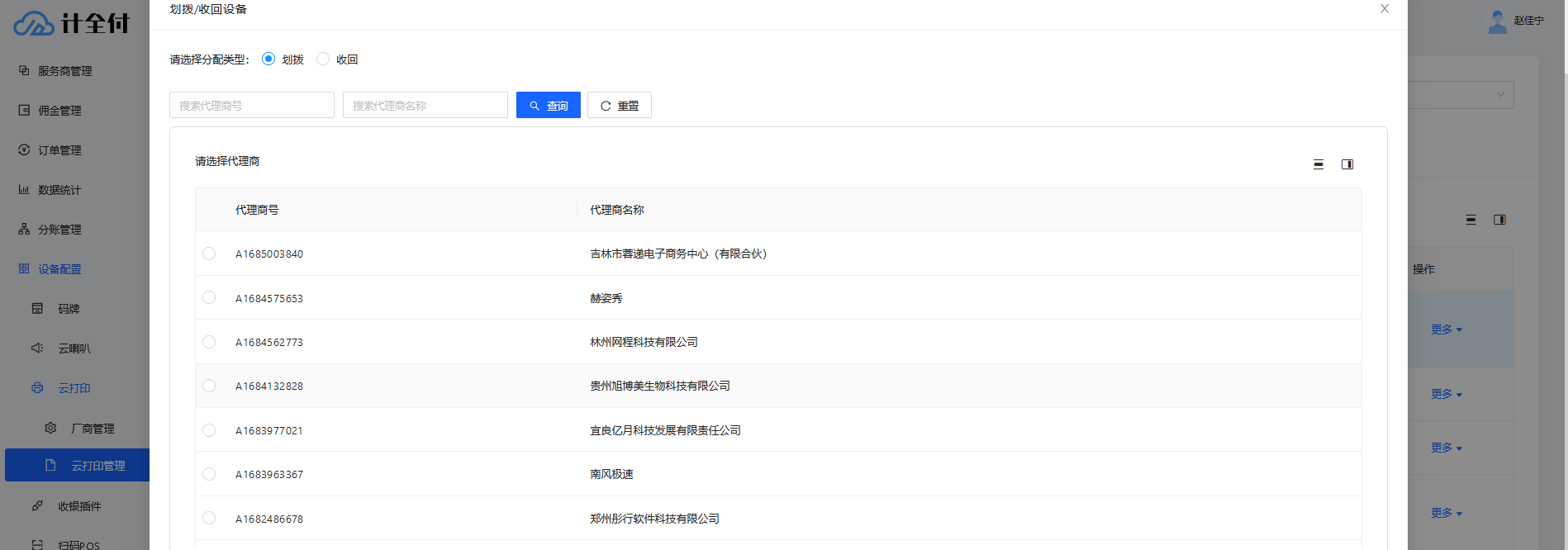 在操作拦下点击更多,选择收回,即可将设备从代理商处收回