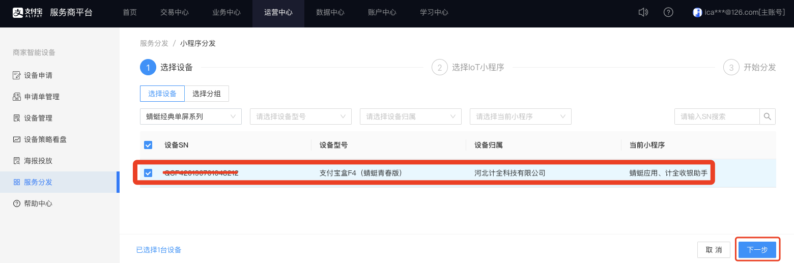 小程序上架后,就可以进到服务商运营中心,去分发到刷脸设备。