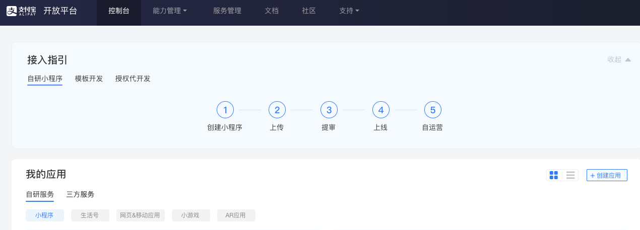 进入支付宝开放平台(先注册账号,并申请开放平台能力)